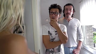 Ξανθιά σε παρτούζα με μεγάλο μαύρο πούτσο